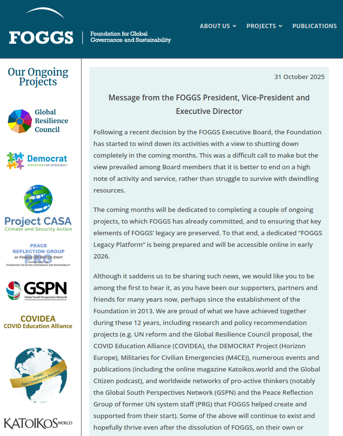 FOGGS – Foundation for Global Governance and Sustainability was a “think-and-do tank”, generating research and ideas, providing a space for discussion, and doing advocacy for organizations and projects working on global sustainability.