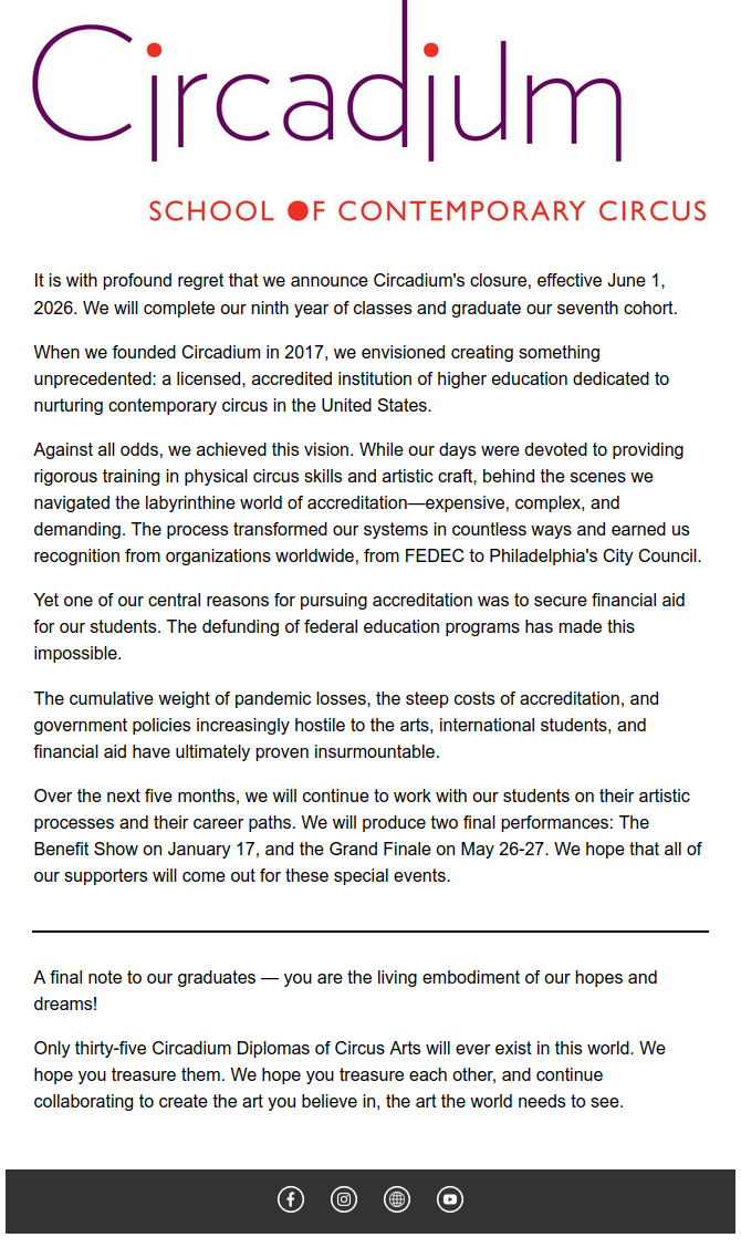 For almost ten years, this School of Contemporary Circus offered courses and diplomas in the circus arts.