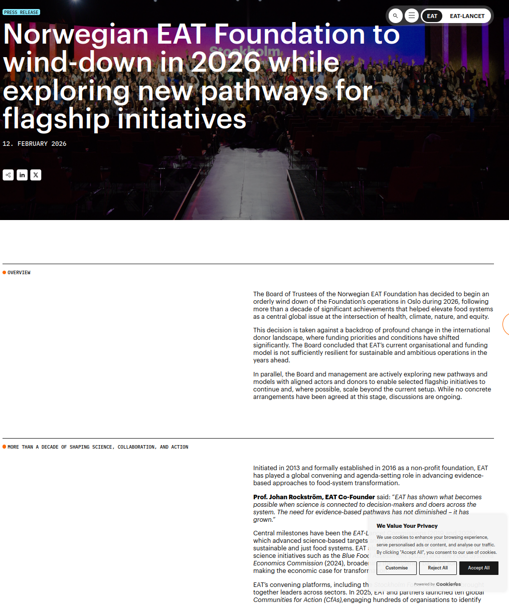 EAT played a global convening and agenda-setting role in advancing evidence-based approaches to food-system transformation.